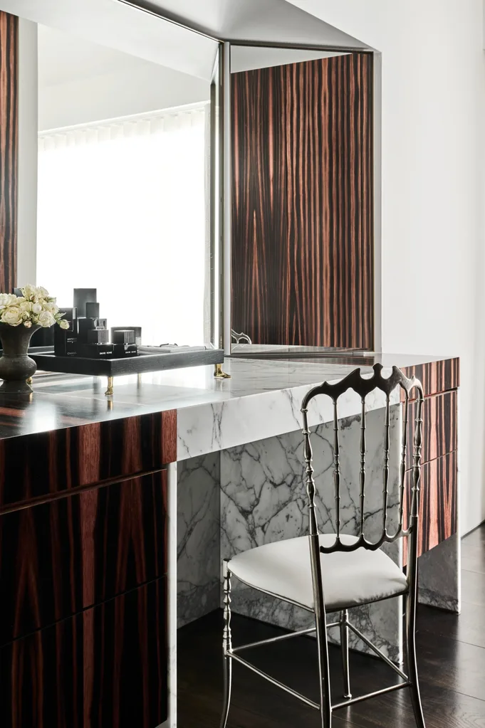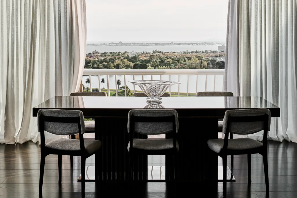The owners bought the spacious apartment in a landmark building in 2009. Thirteen years later, they wanted a more modern and glamorous take, a home that luxuriated in the view but without those original glaring – and glary – faults. “The layout, typical of the era, with separate kitchen, dining and living, made the penthouse dark and poky,” says David.