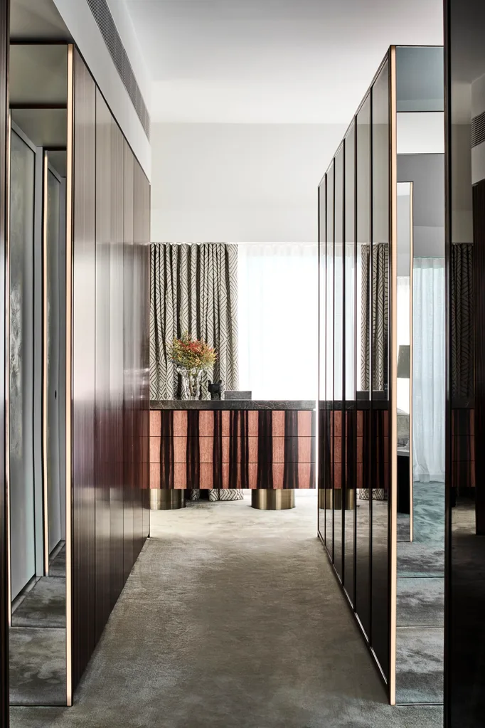 Luxe new finishes have elevated the high-rise apartment to the truly special. The sheen, which still peppers the interiors, is more subdued and without the harshness of the past, and dark floorboards have replaced the thick carpet and marble in the living areas.