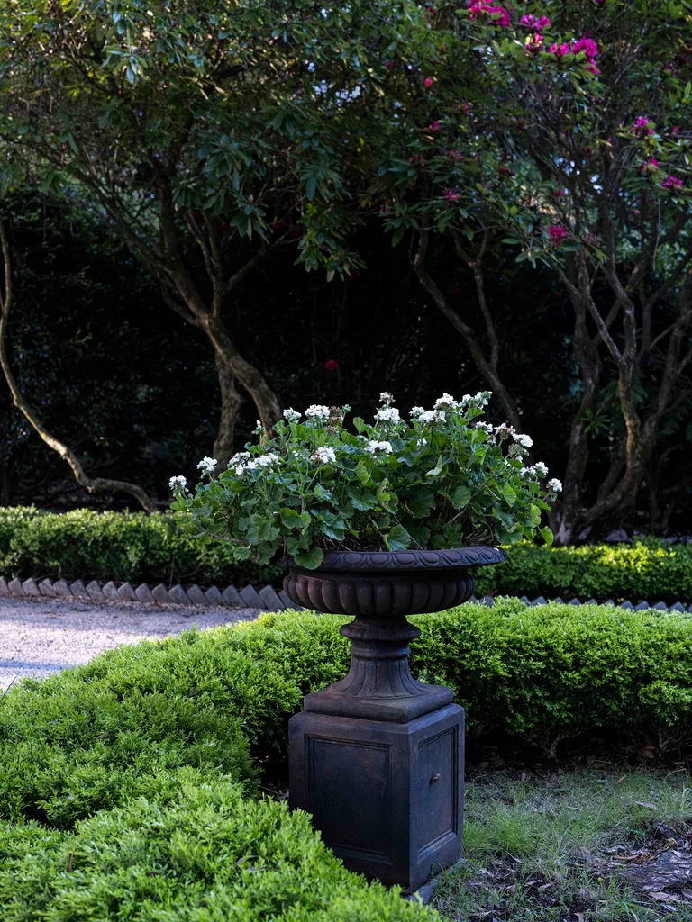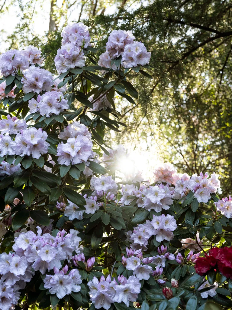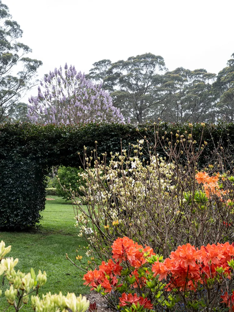 The Parterre is an ornate area of Korean and English box hedging accessed by a laburnum covered arbour, while the Paisley Garden is named for the shape of its garden beds full of deciduous azaleas.