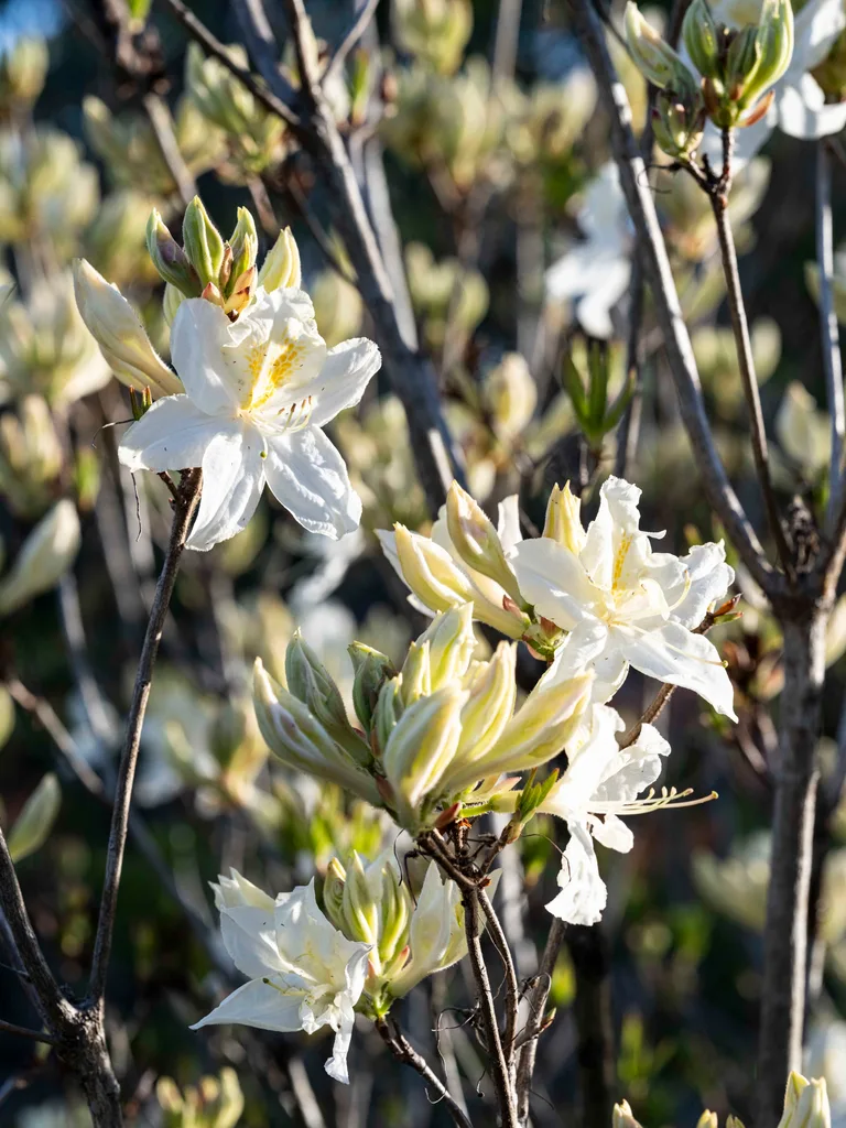 With such a large area to work with, Michael divided the garden into a number of zones. There’s the Parkland, where established blue spruce trees are interspersed with the above-mentioned mass-planted beds of azaleas, May bush and rhododendrons.