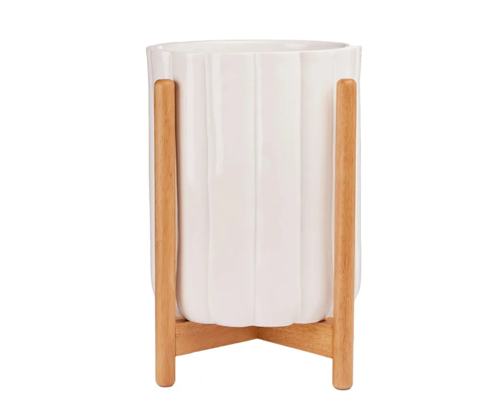 With a modern scalloped edge set in a wooden base, this timeless plant stand looks best with tall leafy flora that doesn’t require a drainage hole to survive, such as a peace lily. Whether you prefer a coastal interior, traditional or are a modern minimalist, this contemporary plant stand will easily brighten a space and provide a beautiful home for your greenery.