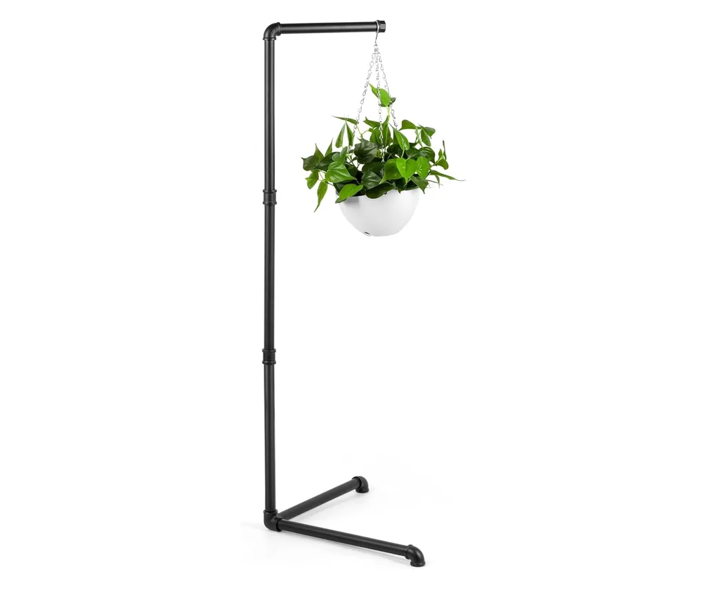 With its long vertical design, this iron hanging basket plant stand is thoughtfully designed to save space, making it suitable for small areas like living rooms, bedrooms, hallways, and corners.