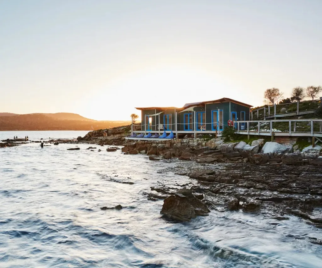 Each of the 15 stone cottages and six suites faces the private beach and the dazzling Great Oyster Bay, with the Freycinet Peninsula’s long line of hummocks on the horizon.