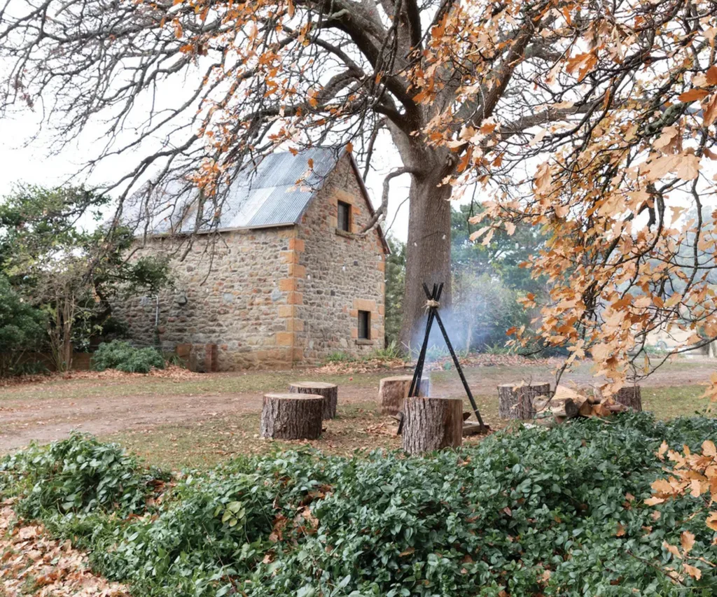 This converted 1890s sandstone stable is located on the grounds of Twamley Farm, a property in Buckland that has been passed down lovingly through generations. Nestled under English oaks, the stable has its own private cedar hot tub, and a pantry and fridge fully stocked with breakfast provisions.